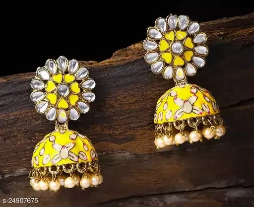 Meenakari Earrings are famous for their vibrant enamel work. They come in a wide range of colors and designs, making them a colorful and eye-catching accessory.