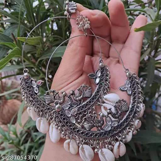 Chandbali Earrings are known for their crescent moon shape. These earrings are adorned with stones, pearls, and delicate filigree work. Chandbalis are a popular choice for weddings and festive occasions.