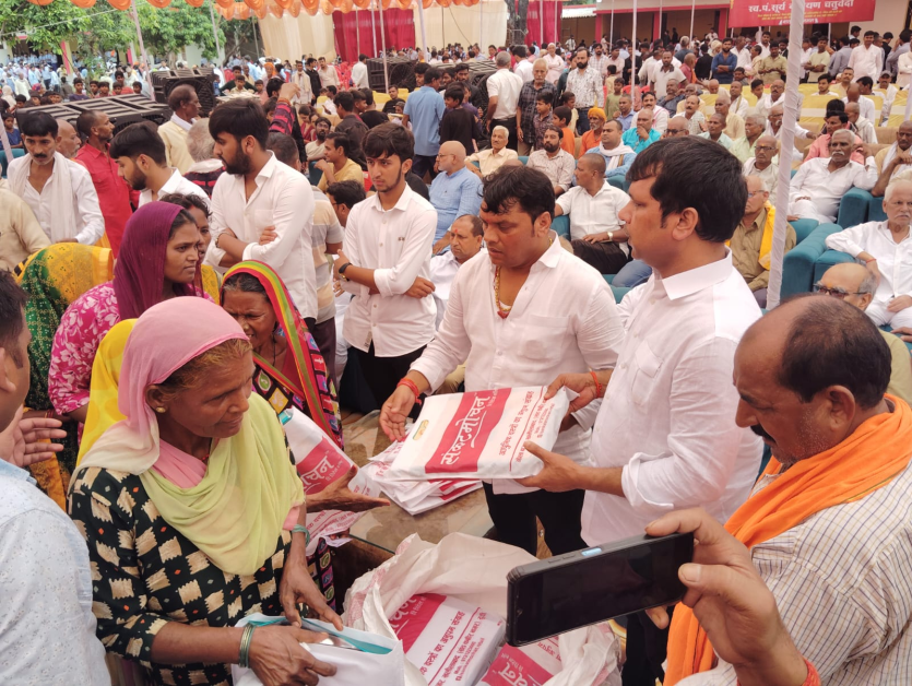 -7वी पुण्यतिथि के अवसर पर डॉ उदय प्रताप चतुर्वेदी ने अपने बड़े भाई पूर्व विधायक जय चौबे और राकेश चतुर्वेदी के साथ हजारों गरीबों में वस्त्र का किया वितरण