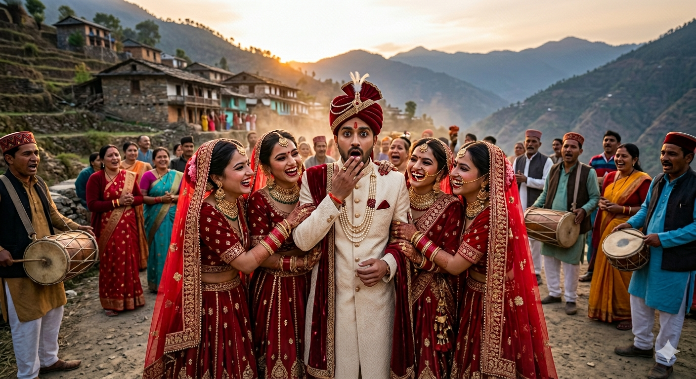 चकराता तहसील क्षेत्र के गांव खारसी में बुधवार को उस समय अनूठा नजारा देखने को मिला, जब पांच दुल्हनें अपनी बरात लेकर एक ही परिवार में पहुंचीं। खारसी में संयुक्त परिवार के दो सगे भाइयों दौलत सिंह चौहान व मोहन सिंह चौहान की छह संतानों (पांच भाई और एक बहन) का विवाह जौनसार बावर के पारंपरिक रीति-रिवाज के अनुसार संपन्न हुआ।