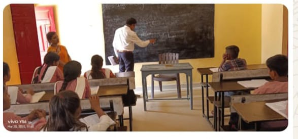 विकास खण्ड कप्तानगंज के अन्तर्गत ओझागंज पूर्व मा०वि० में समास पढ़ा रहे खण्ड शिक्षा अधिकारी