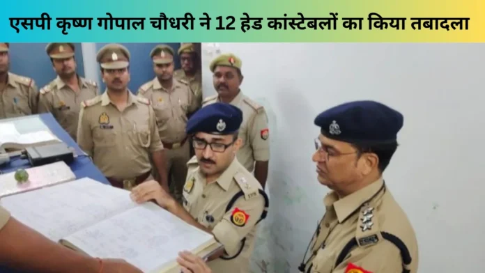 बस्ती। कानून व्यवस्था को सुदृढ़ रखने के लिए एसपी कृष्ण गोपाल चौधरी ने 12 हेड कांस्टेबलों का तबादला किया है। हेड कांस्टेबल मदन निषाद को पुलिस कार्यालय के अनुसार थाना रुधौली से पुलिस लाइंस मे तबादला कर दिया गया। शैलेंद्र कुमार दुबे रुधौली थाने में तैनात थे, उनका तबादला थाना मुंडेरवा में कर दिया गया, राघवेंद्र दुबे जो सोनहा में ड्यूटी कर रहे थे, उनका तबादला छावनी में कर दिया गया, ऋषिकेशमणि त्रिपाठी को पुरानी बस्ती से पेशी सीओ कलवारी में तबादला कर दिया गया है।