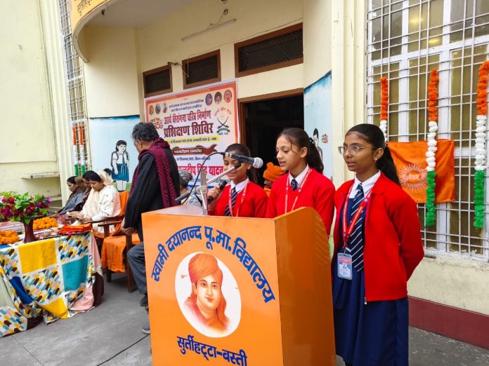 आर्य समाज नई बाजार बस्ती एवं स्वामी दयानंद विद्यालय सुर्तीहट्टा बस्ती के संयुक्त तत्वावधान मे आर्य वीरांगना चरित्र निर्माण शिविर का आयोजन किया गया है। जिसका मुख्य उद्देश्य बालिकाओं को समर्थ एवं सशक्त बनाना है। यह जानकारी देते हुए ओम प्रकाश आर्य प्रधान आर्य समाज नई बाजार बस्ती ने बताया
