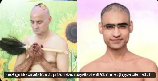 एटा। कहा जाता है कि माता-पिता बच्चों के लिए प्रेरणा होते हैं, लेकिन यहां तो धर्म के मामले में पुत्र ही प्रेरक बन मिशाल बन गए। भगवान महावीर के प्रति ऐसी लौ जली कि पढ़ाई लिखाई बीच में ही छोड़कर महावीर में रम गए। बेटा में बैराग जागा तो माता-पिता ने भी संत जीवन जीने का निर्णय लिया और गृहस्थ जीवन का त्याग सत्य, अहिंसा की अलख जगाने के लिए जैन संत बन गए।