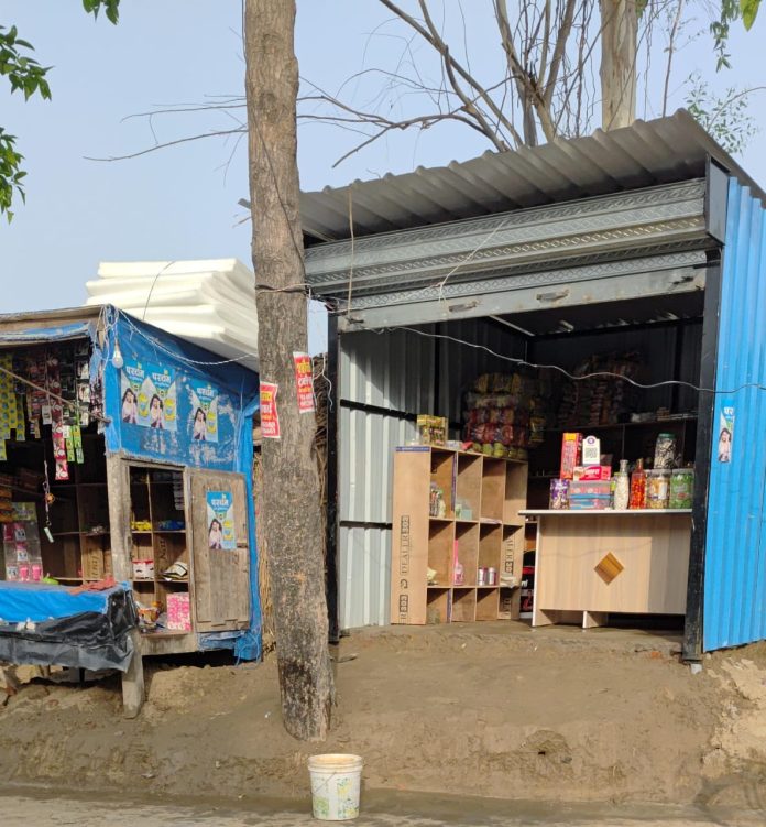 गड्ढे की जमीन दबंगों ने कब्जा कर खोला दुकान, नियम की जमकर उड़ रही धजिया।