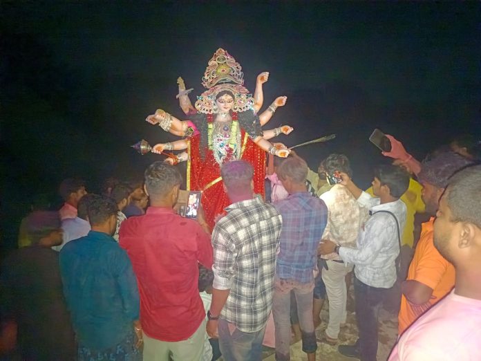 पुलिस प्रशासन गोताखोरों के सहयोग से लगातार देर रात तक मूर्ति विसर्जन कराया गया।