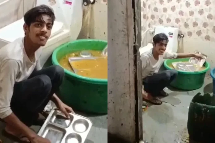 वीडियो में युवक द्वारा शौचालय से बहते गंदे पानी का इस्तेमाल प्लेटें साफ करने के लिए किया जा रहा है, जिनका उपयोग ग्राहकों को खाना परोसने में किया जाता है। यह दृश्य देखकर लोग स्तब्ध हैं और इसे साफ-साफ स्वास्थ्य मानकों का खुला उल्लंघन बताया जा रहा है।