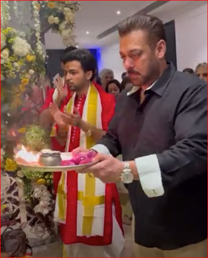 बॉलीवुड में गणेश उत्सव बड़े धूमधाम से मनाया जाता है। बुधवार को सलमान खान ने भी परिवार के साथ भगवान गणेश का स्वागत किया। इस अवसर पर वह अपने माता-पिता सलीम और सलमा खान के साथ आरती करते हुए नजर आए, जिसके कई वीडियो सोशल मीडिया पर वायरल हो रहे हैं।