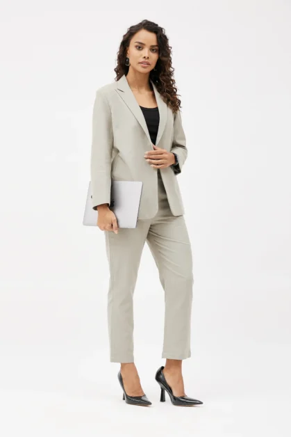 An oversized boyfriend suit looks great with sneakers, loafers, or ankle boots. It adds a touch of casual chic to your outfit.