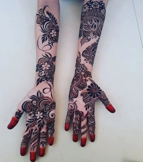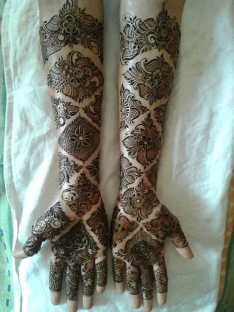Arabic mehndi designs are known for their bold and free-flowing patterns. They often include floral motifs, vines, and leaves. These designs are popular for their simplicity and elegance.