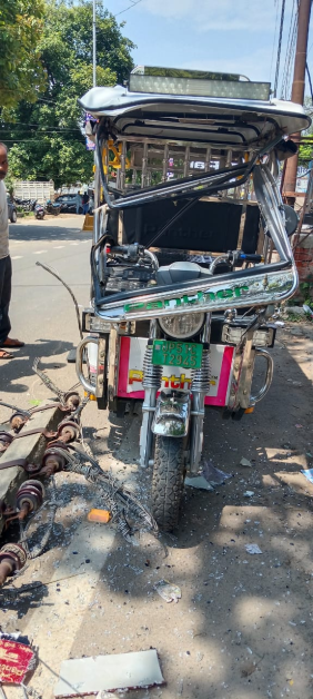 साथ ही पैरों में भी चोटे आई है, ई रिक्शा आगे से ध्वस्त हो चुका है ऐसे में रिक्शे की आय से चलने वाला परिवार आर्थिक संकट में आ गया है।