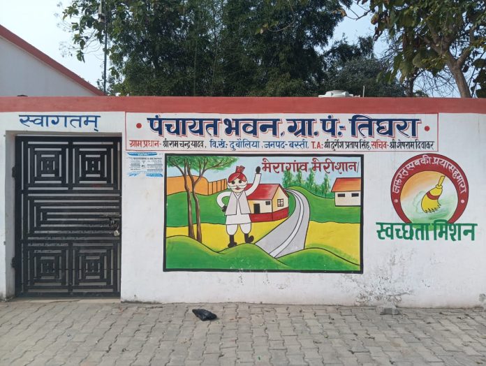 ग्राम पंचायत तिघरा से दवाइयां , कुर्सी , मेज , आलमारी आदि समान गायब , कागज में चल रही OPD