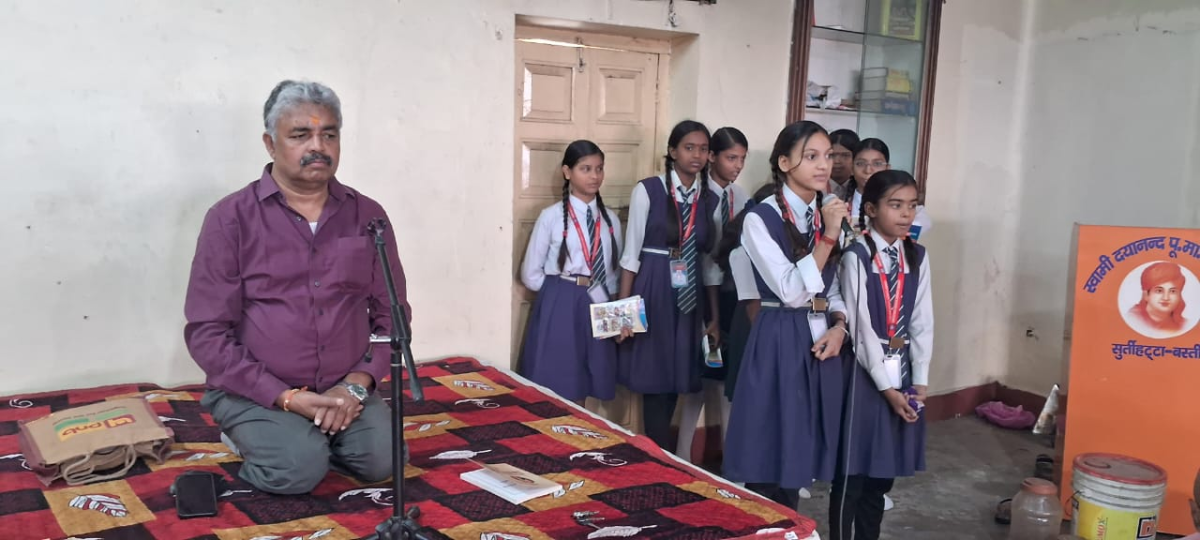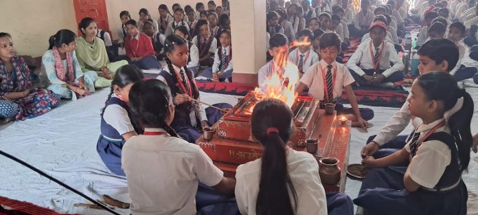 जो कर्म बंधन से मुक्त करती है। उन्होंने बताया कि विद्यार्थी को सत्य को ग्रहण करने और असत्य को छोड़ने में सर्वदा उद्यत रहना चाहिए इससे जिज्ञासा बनी रहती है। शिक्षक अनूप कुमार त्रिपाठी ने बच्चों को सदाचार और संयम के विषय में बताया।